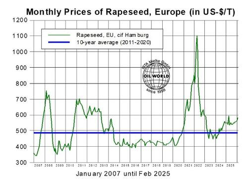 Na druhej strane, priaznivé vyhliadky úrody repky v EÚ na rok 2026, ako aj dostatočné exportné dodávky z Austrálie pravdepodobne obmedzia ďalší rast cien repky v EÚ.