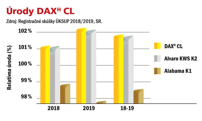 DAXH CL má dobrý počiatočný vývin, preto ho odporúčame pre stredné až neskoršie termíny sejby. Svojou skorosťou a mohutným koreňovým systémom veľmi dobre toleruje aj suchšie oblasti a stresové podmienky pestovania.