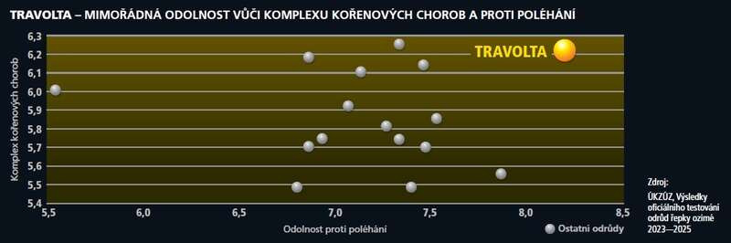TRAVOLTA je novým členom modernej genetiky RAPOOL, ktorá kombinuje vysokú úrodu semena s vysokou olejnatosťou.